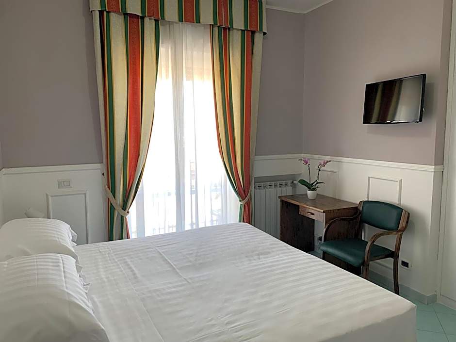 Boasting a balcony, this room with attached bathroom features a TV, cooling fan and tiled floors. It comes with Mediterranean-style décor.